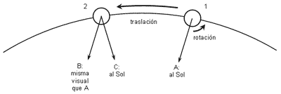 "1", la línea de vista hacia el Sol es "A". Pero, mientras la Tierra